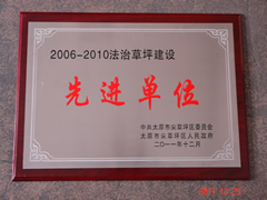 2011年12月29日,我公司獲得由中共太原市尖草坪區(qū)委員會(huì)和太原市尖草坪區(qū)人民政府聯(lián)合頒發(fā)的《2006-2010法治草坪建設(shè)先進(jìn)單位》榮譽(yù)稱(chēng)號(hào)。