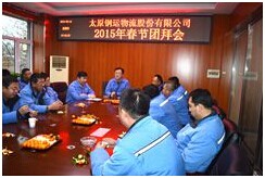 2015年2月19日,公司召開春節(jié)團(tuán)拜會。公司總經(jīng)理胡永生代表董事會向全體職工及家屬送上誠摯的春節(jié)祝福,同時各部門各分公司經(jīng)理也表達(dá)出對鋼運(yùn)物流的深切祝福。會后,總經(jīng)理助理尹躍飛、郝建國深入現(xiàn)場慰問一線職工。
